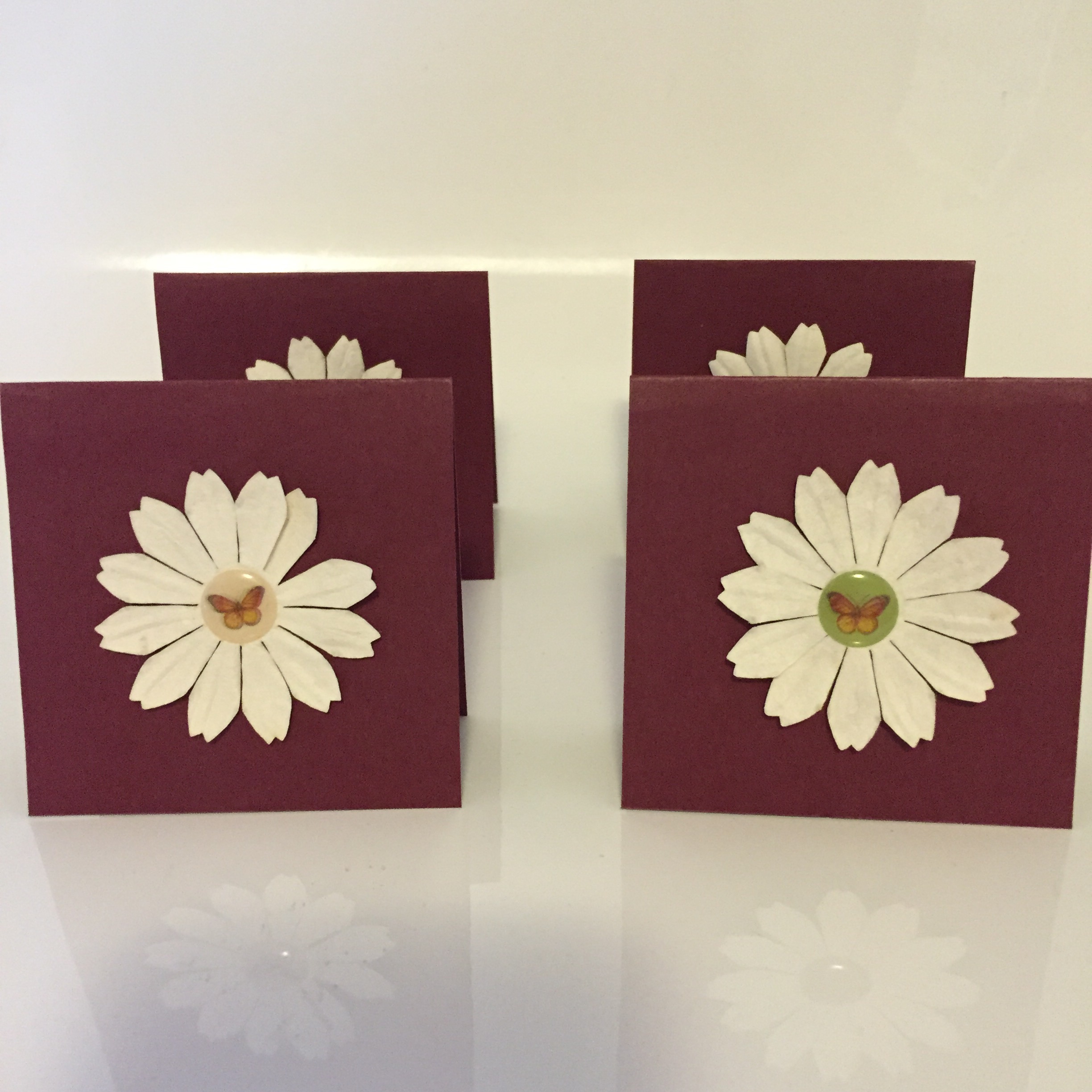 When I was rummaging through my stash yesterday making some cards out of punched out colouring in, I also came across a few scraps of paper, flowers and buttons I decided to turn into cards at the same time.