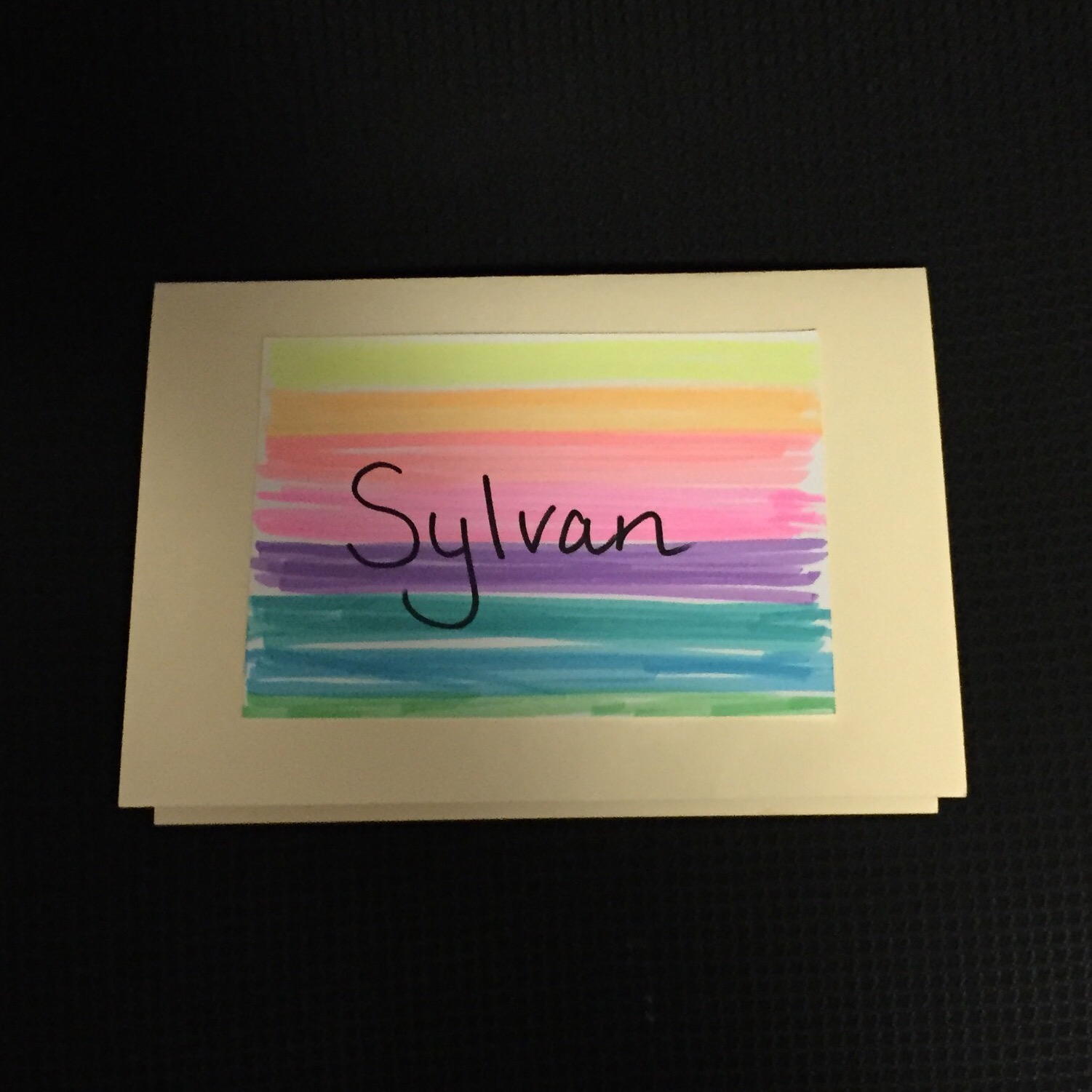My son had a birthday party today and the theme was “fluoro”. This is the card I came up with by making a background with fluoro textas and then writing the birthday boy’s name in black Sharpie over the top: