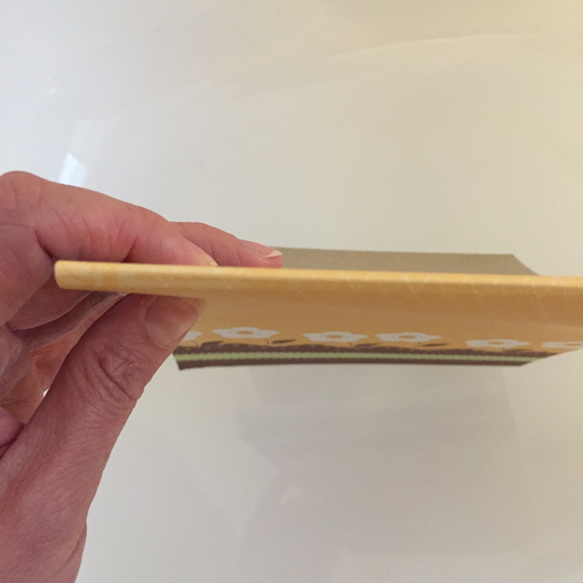 Just measure the width of the writing pad and cut the paper to size, then fold and glue excess paper at the back. It works better if you score the fold line and score another half cm further along for where it needs to create a spine, but a simple fold works fine too. This picture hopefully explains what I mean about the two scores half a can apart helping to create a “spine”