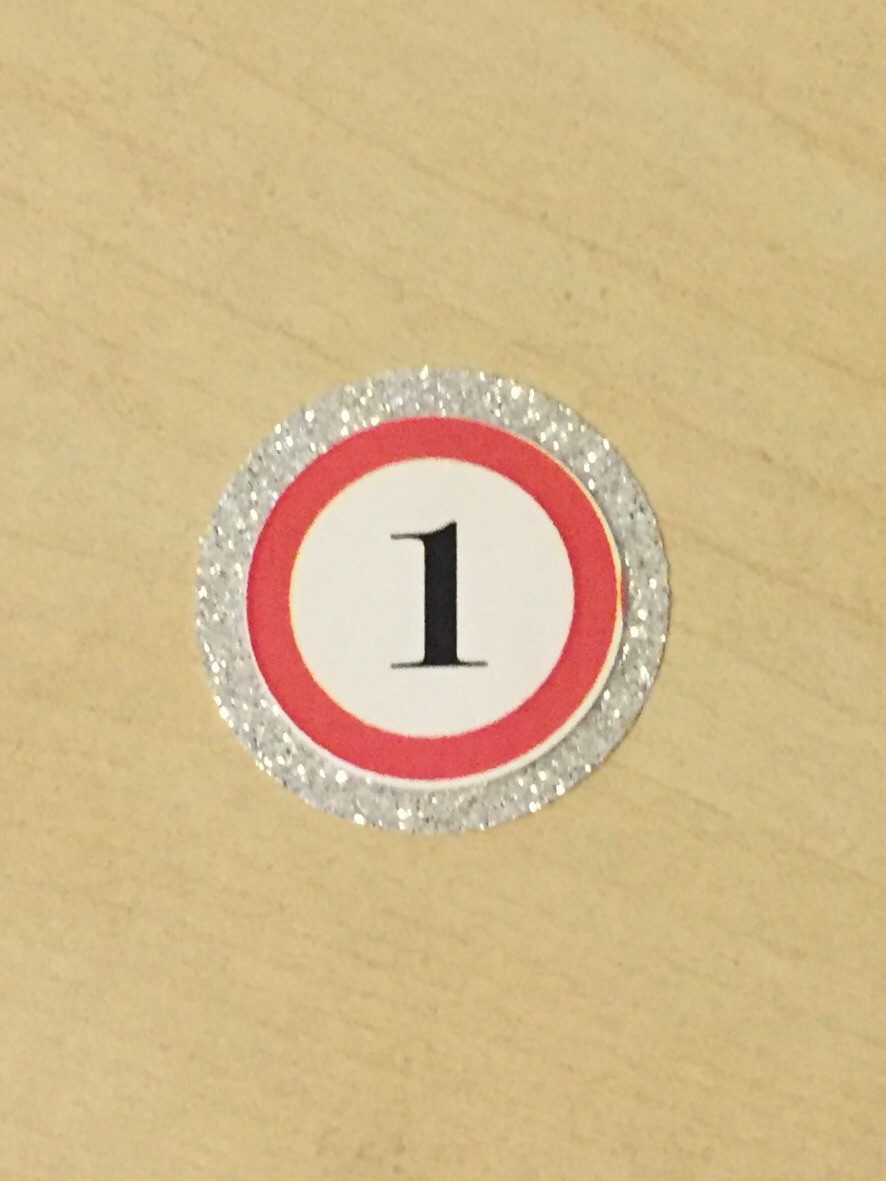 They work with a 1 inch circle punch. I also used Stampin’ Up!’s glitter sheets and my 1 1/4 inch circle and star punches as backgrounds for the numbers.