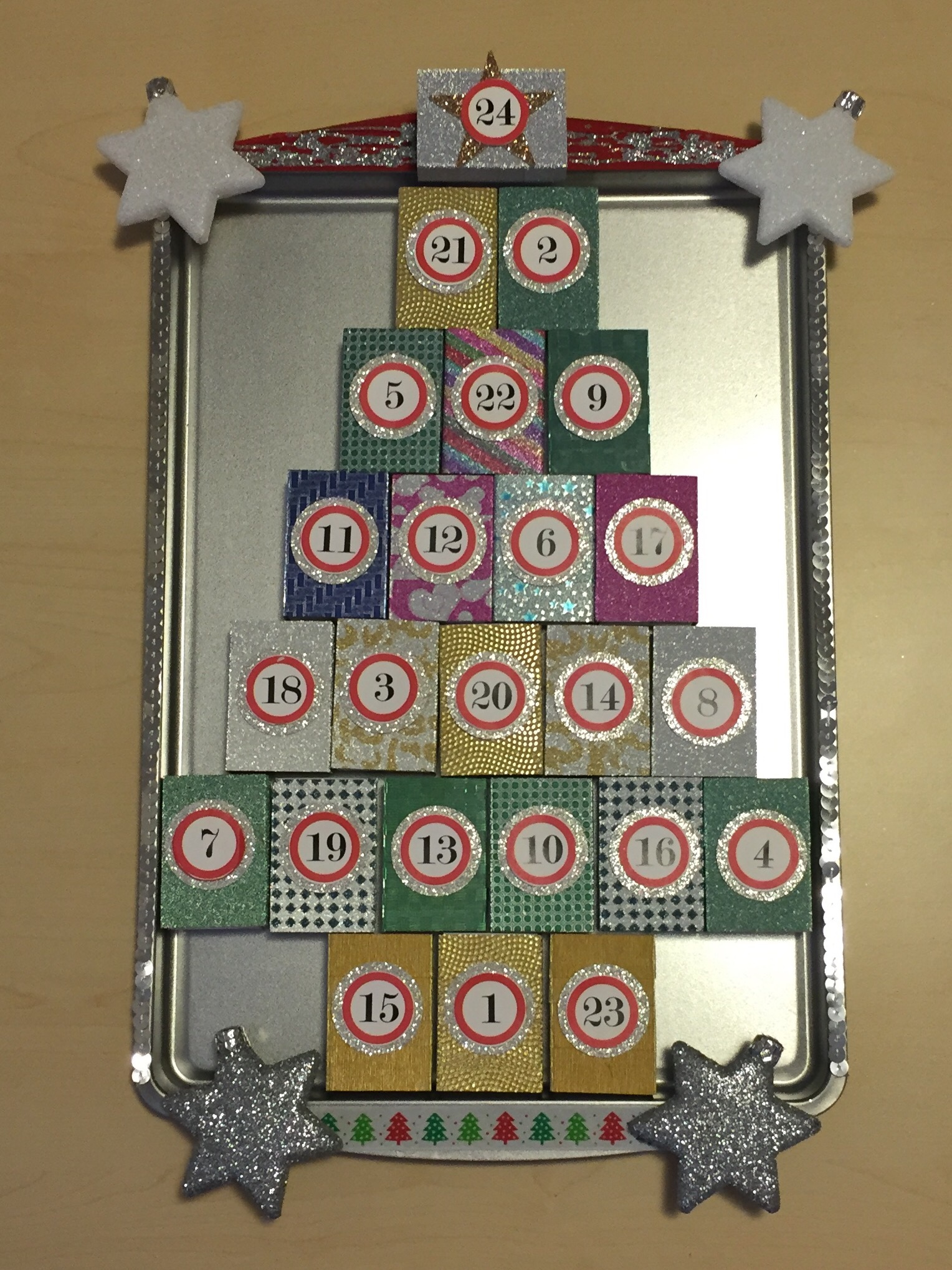 So there you have it – my glittery, sparkly home made advent calendar. Anyone got any ideas for what to do with hundreds of spare matches? 😉