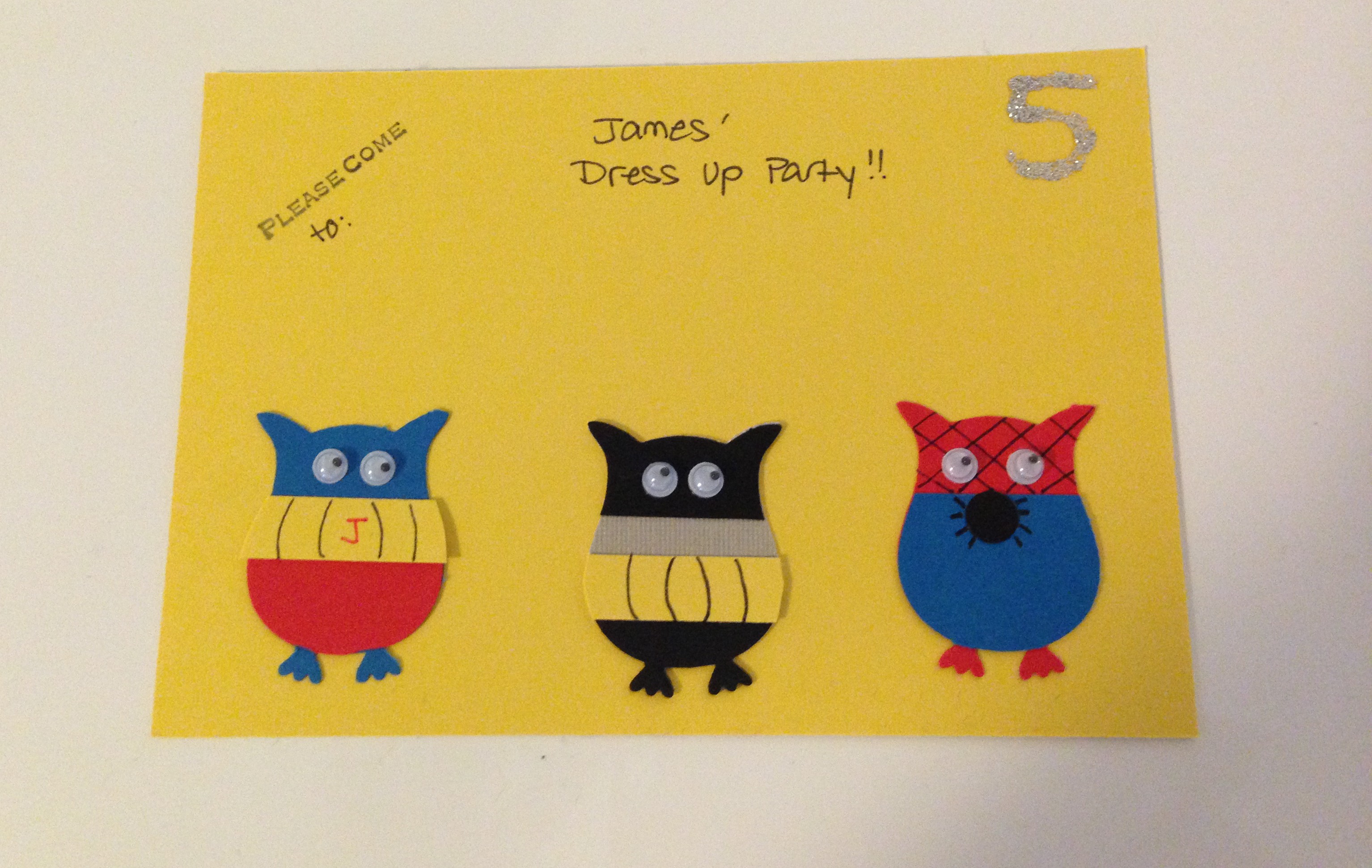 I was thinking about just drawing / using circle punches for the eyes on the inside of the card, but had some printable eyes left over from the party (web address in the photo)